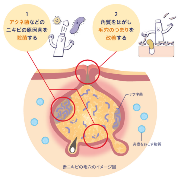 - さらに、微小面ぽうの段階でも治療効果があるため、継続して使用することで新しいニキビが出きにくくなります。