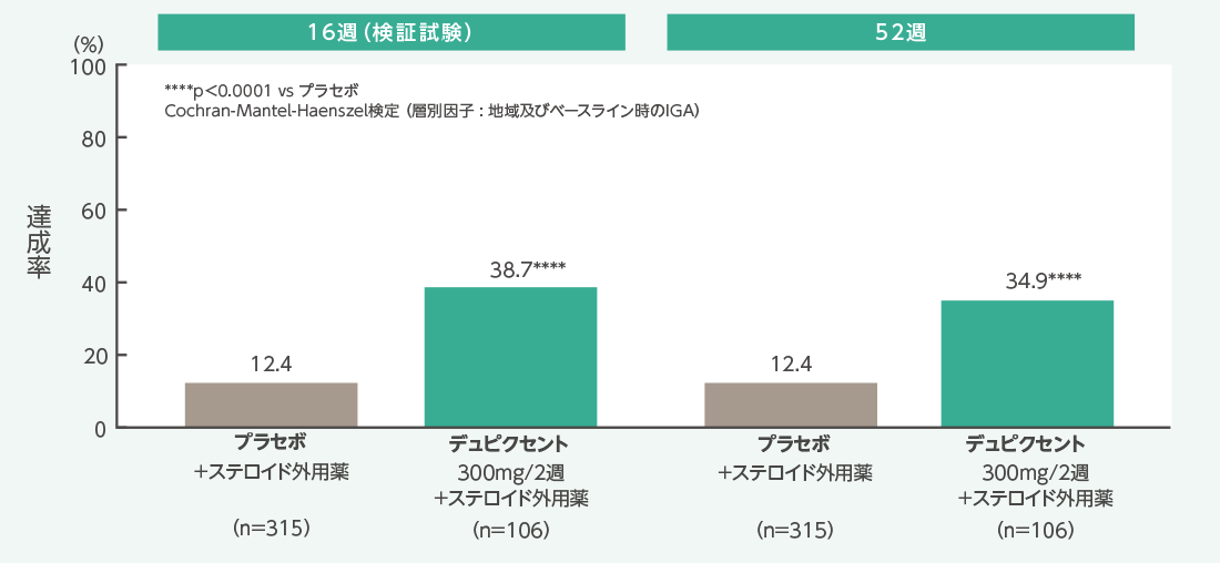 IGA≦1(消失/ほぼ消失)※を達成した患者の割合皮膚病変がほぼ消失(IGA≦1)した患者が3人に1人