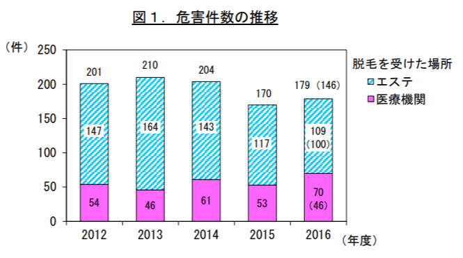 消費者センターに「脱毛施術」でのトラブルが毎年報告されています。