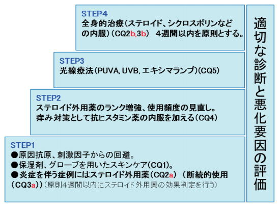 皮膚科学会の診療ガイドラインを準拠した治療STEP。