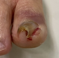 巻き爪が食い込んでしまい、陥入爪を併発することもあります。