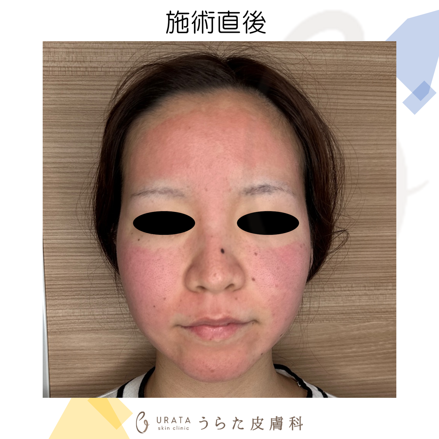 直後から照射部位が赤くなりますが、1日でほぼ改善します。