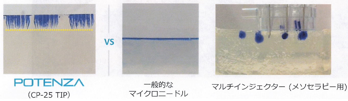 従来のダーマペンや水光注射と比較して、皮膚内部へのドラッグデリバリーをより効率的に行うことが出来ます。