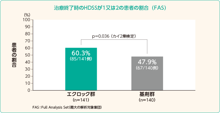 HDSS(自覚症状スコア)が2点以下に、60.3%が改善。(対照群47.9%)