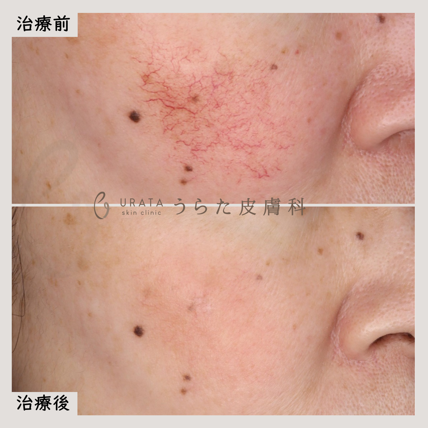 レーザー治療は、現在見えている拡張した血管を破壊するものであり、毛細血管拡張症になりやすい体質そのものを変えるわけではありません 。治療後も紫外線対策や生活習慣の改善を怠ると、新たな血管が拡張して再び目立ってくることがあります 。そのため、治療後も継続的なセルフケアが非常に重要になります。