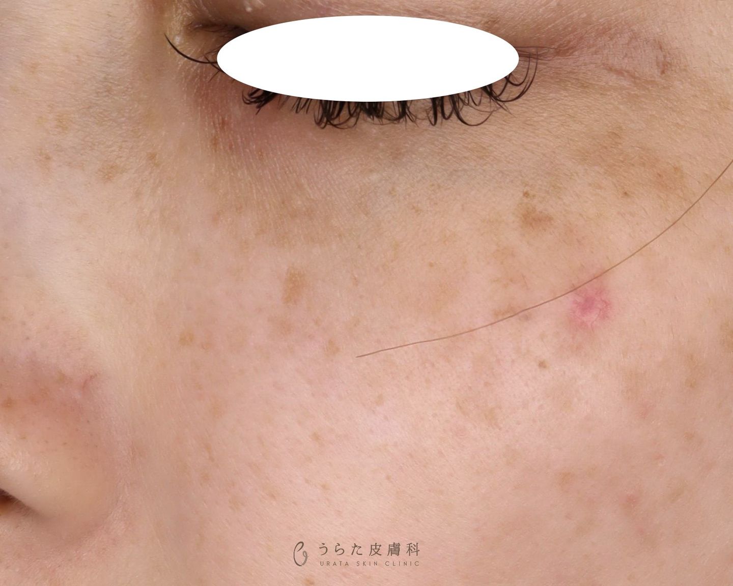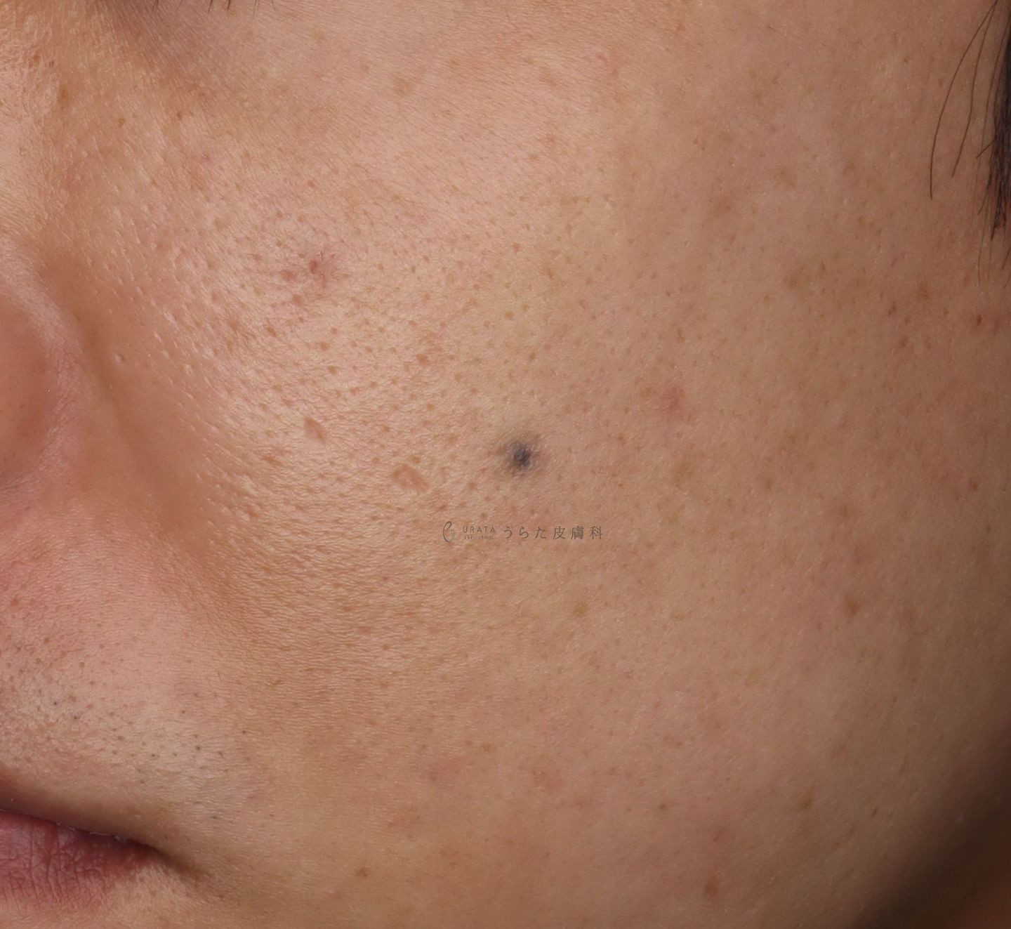 治療内容:局所麻酔を行い、ほくろを切開切除し、縫合します。約5日後に抜糸します。